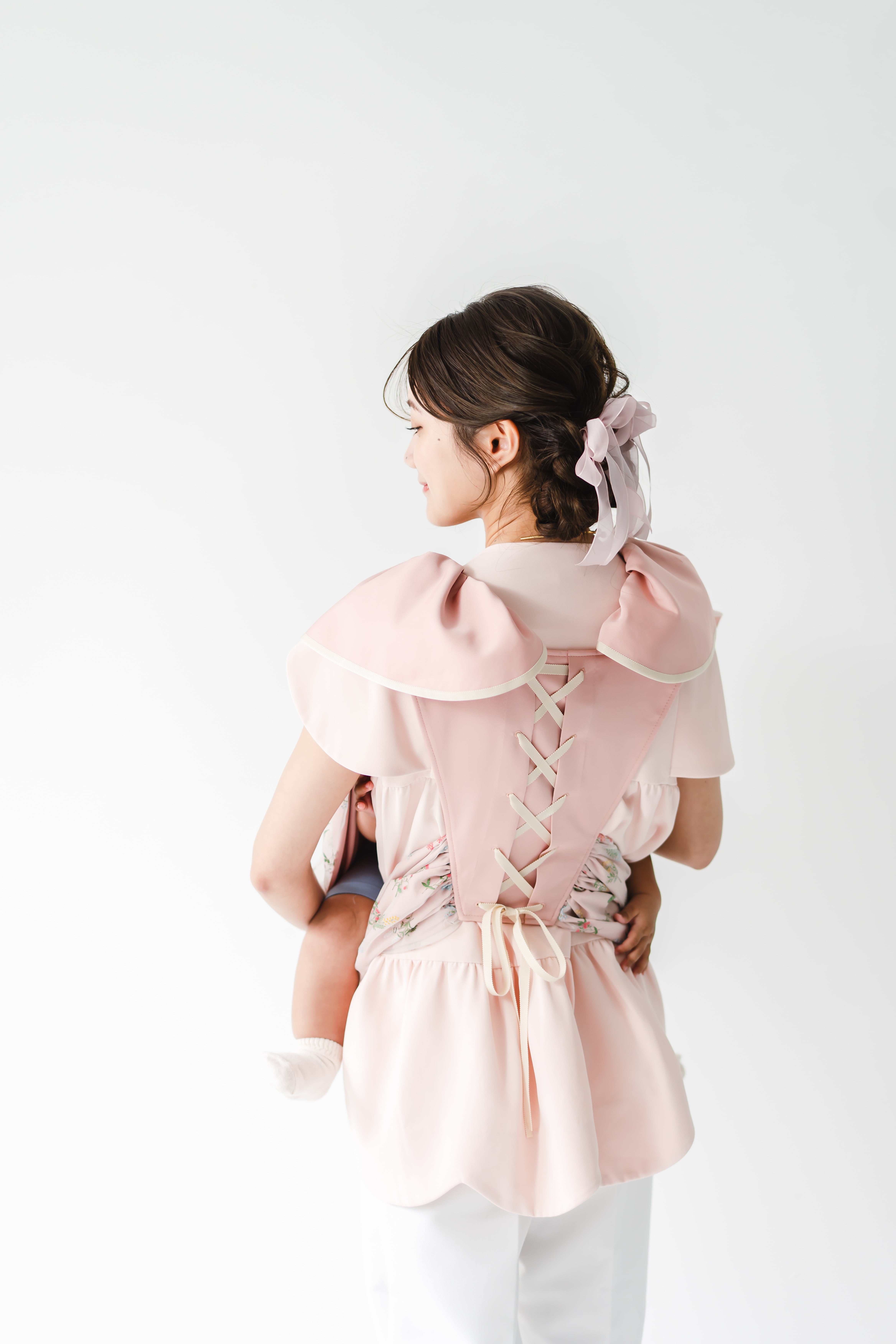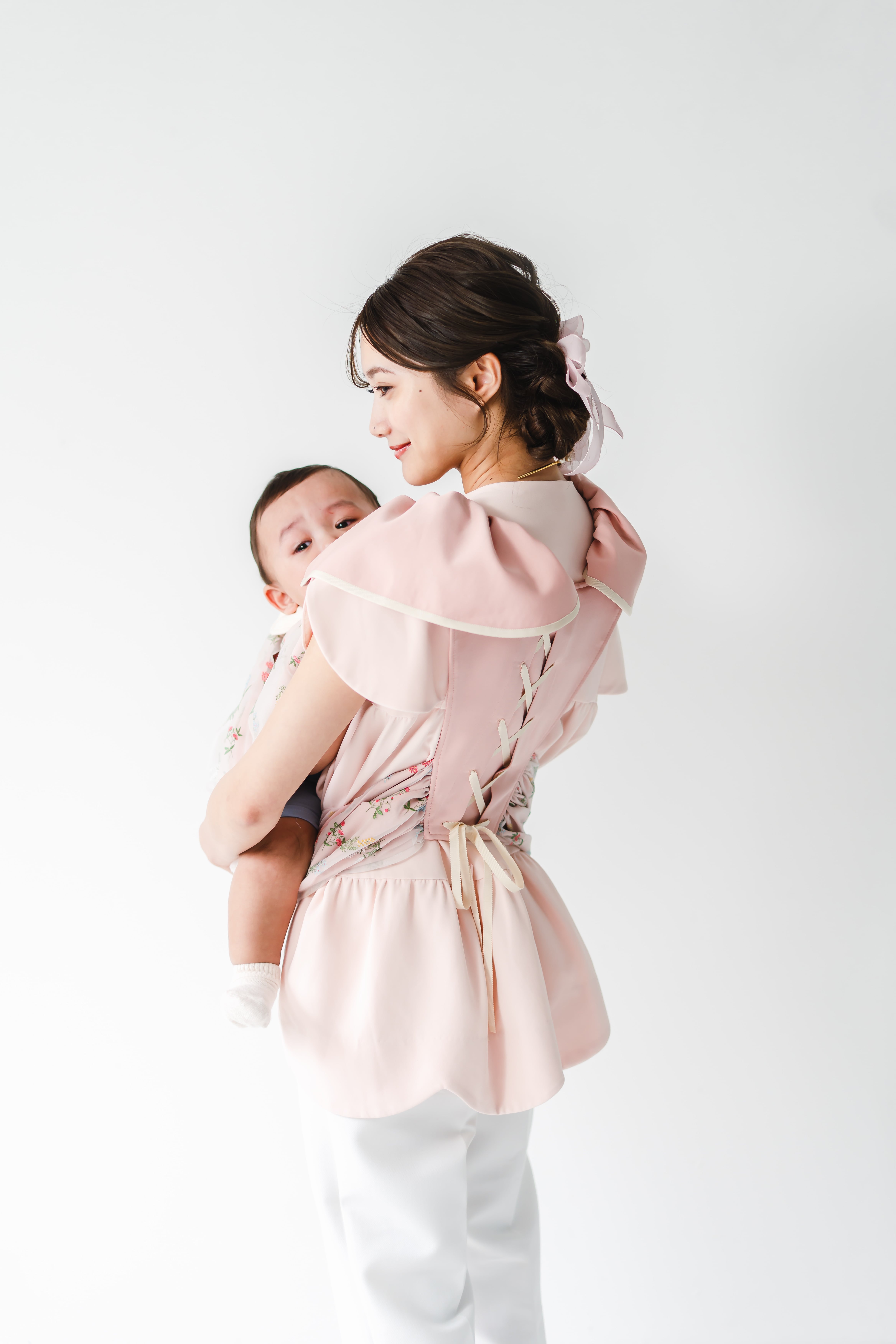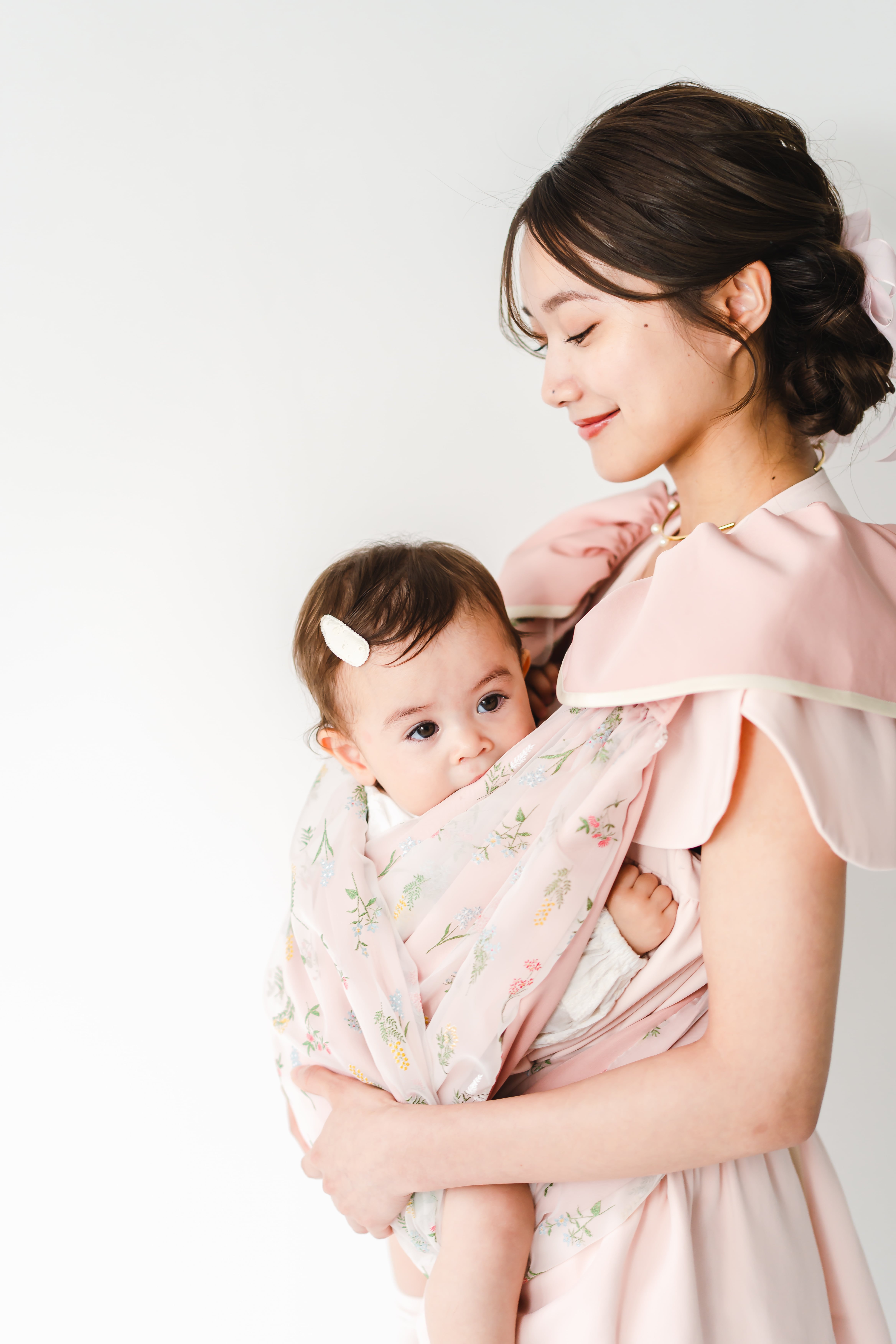 チュール素材に繊細なお花模様をあしらい、まるでバルーンのような丸みが赤ちゃんを優しく包み込みます。