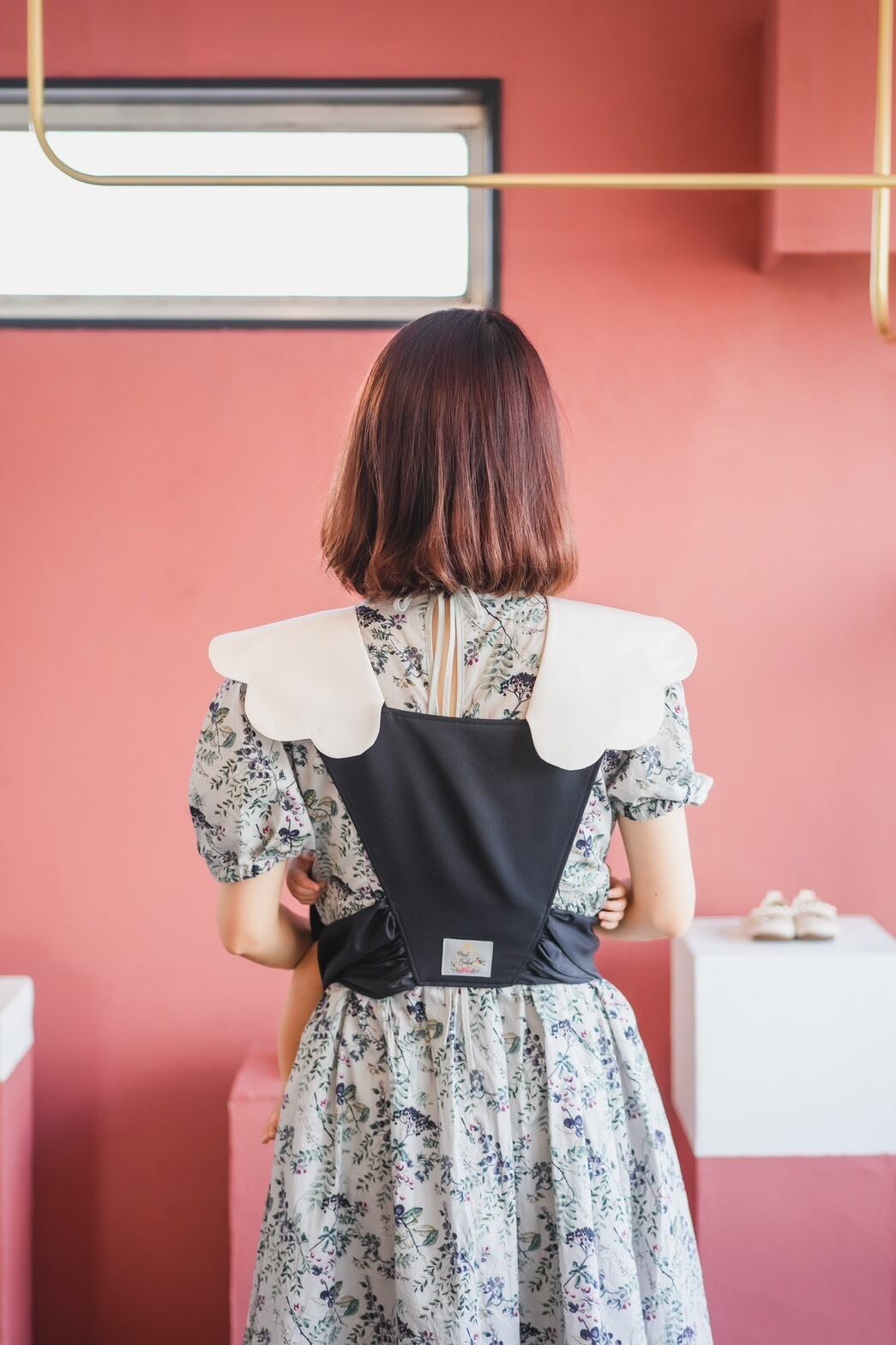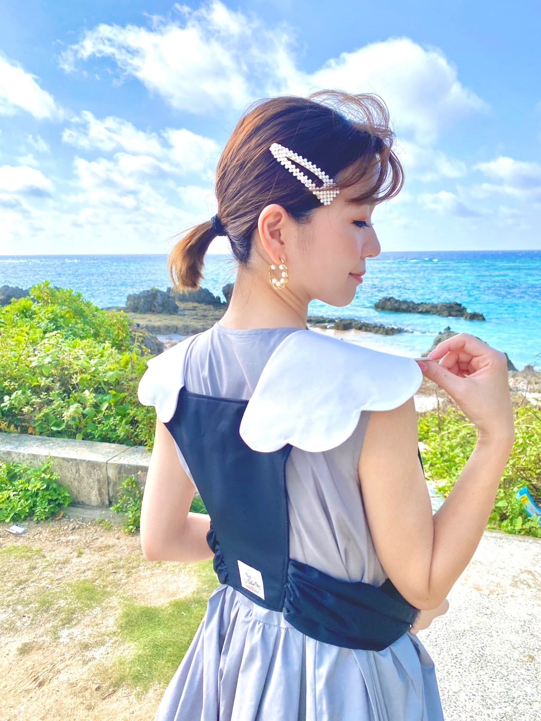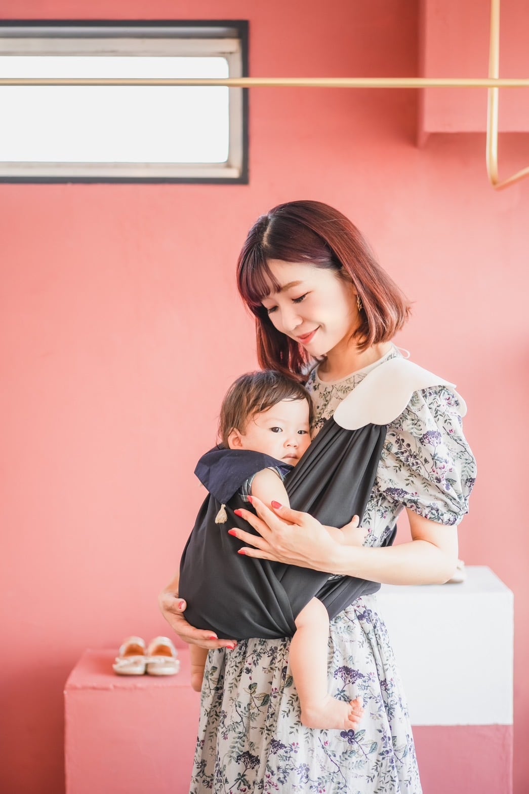 ママのコーディネートのワンポイントになる抱っこ紐です。